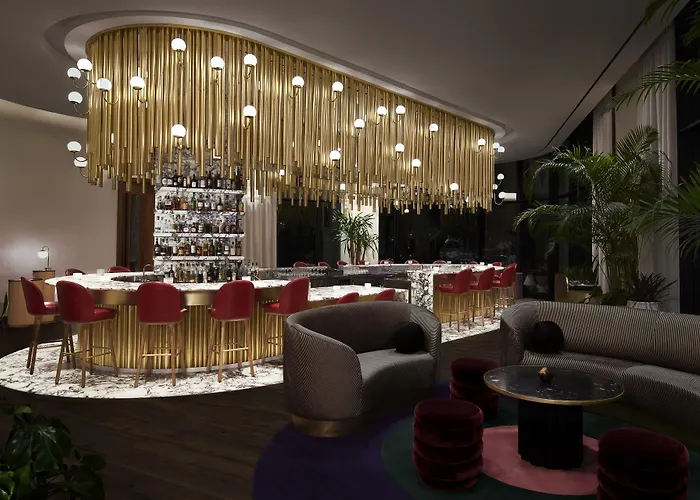 Das Hotel The Lumen besitzt Zimmer, die den Pool überblicken. Diese Zimmer sind mit eleganten Möbeln eingerichtet.